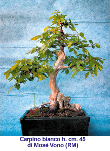 Il Carpino è un albero che merita un posto speciale nel campo bonsaistico: la fitta ramificazione, le foglie piccole e profondamente nervate, unite alla facilità di lavorazione, rendono questa essenza particolarmente interessante, sia per l'esperto che vuole un bonsai pregiato, sia per il principiante, che può ottenere facilmente un discreto esemplare e si può permettere anche gravi errori, senza pregiudicare la salute del bonsai. Le specie utilizzate per la coltivazione a bonsai sono essenzialmente diverse: la più diffusa è Il Carpino bianco (Carpinus betulus) varietà autoctona, la quale in natura raggiunge i 20 metri di altezza, sopporta bene tutte le avversità e le potature anche drastiche. Sotto la scura corteccia, si trova un legno molto chiaro (appunto per questo viene chiamato “bianco”) caratteristica molto utile quando si effettuano le tecniche di scortecciatura. Il Carpino nero (Ostrya carpinifolia) è molto simile, con la differenza nel colore del legno rosso-bruno, inoltre ha un portamento più slanciato.