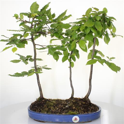 Carpinus betulus (Corylacee) Albero di origine euroasiatica, in natura vive attorno ai 1000 mt. di altitudine. Il suo nome viene dal celtico, car, testa, e pin, legno. Come l'Olmo, il Carpino è un bonsai particolarmente resistente alle avversita' atmosferiche ed alle "cure" dei bonsaisti inesperti. Foglie piccole con nervature pronunciate, di un bel verde chiaro, è una pianta che dona molte soddisfazione grazie alla sua rusticità ed alla possibilità di educarla nei vari stili bonsai. Particolarmente adatto ai climi freddi.