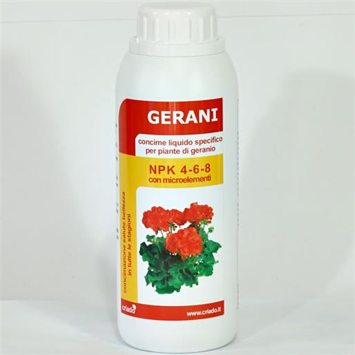Concime liquido. Il suo rapporto npk è ideale per nutrire tutte le piante di geranio rampicanti e zonali; l’alta concentrazione di potassio favorisce la formazione di boccioli, promuove la fioritura e la colorazione dei petali. I microelementi presenti nella formulazione attivano i processi biochimici della pianta, aumentano le autodifese, curano le microcarenze ed evitano gli ingiallimenti fogliari e l’insorgenza di fisiopatie.