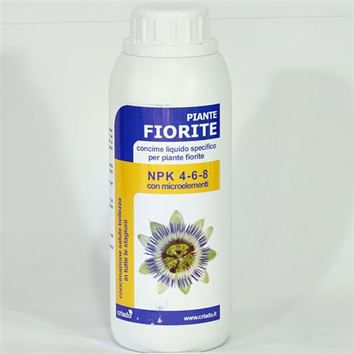 Concime liquido. Il suo rapporto npk è ideale per nutrire tutte le piante da fiore; l’alta concentrazione di potassio favorisce la formazione di boccioli, promuove la fioritura e la colorazione dei petali. I microelementi presenti nella formulazione attivano i processi biochimici della pianta, aumentano le autodifese, curano le microcarenze ed evitano gli ingiallimenti fogliari e l’insorgenza di fisiopatie.