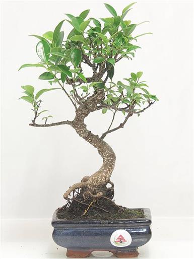 Albero di origine tropicale, dal tronco maculato, con foglie lucide e coriacee; particolarmente apprezzato per la possibilità di vivere anche all'interno,  produce facilmente radici aeree che partono dai rami e, a volte, si ricopre di piccoli frutti. Il Ficus è un bonsai facile da mantenere e poco esigente riguardo le annaffiature e le concimazioni.