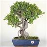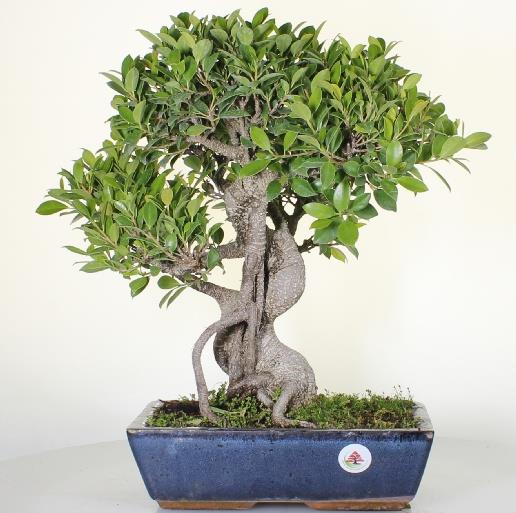 Albero di origine tropicale, dal tronco maculato, con foglie lucide e coriacee; particolarmente apprezzato per la possibilità di vivere anche all'interno,  produce facilmente radici aeree che partono dai rami e, a volte, si ricopre di piccoli frutti. Il Ficus è un bonsai facile da mantenere e poco esigente riguardo le annaffiature e le concimazioni.