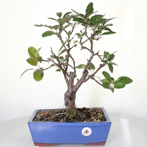 Tra i bonsai da frutto, il Melo è sicuramente la scelta migliore. Infatti, oltre agli splendidi fiori rossi di primavera, successivamente produce dei graziosi frutti, più piccoli rispetto alla varietà a fiori bianchi) prima verdi e successivamente rossi.