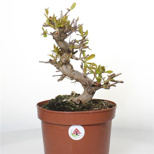 Punica granatum japonica "Nejikan" (Punicacee) Varietà giapponese, in natura cresce fino a 3-4 metri. Ben proporzionato, grazie al fogliame di piccolissime dimensioni, ha il tronco che nel tempo si contorce, conferendo al bonsai un aspetto affascinante. Inoltre, in primavera produce dei graziosi fiori rossi e successivamente, i gustosi frutti che rimangono attaccati alla pianta anche dopo la caduta delle foglie.