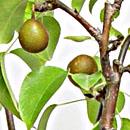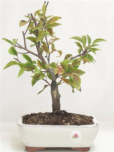 Pyrus communis (Rosacee)Bonsai di origine asiatica, che in natura raggiunge i 10 mt. d'altezza. Pianta in grado di originare, anche in soggetti molto giovani, un'abbondante produzione di fiori bianchi profumatissimi e frutti lunghi 3-4 cm. Bonsai rustico e di facile coltivazione, non richiede grandi attenzioni.