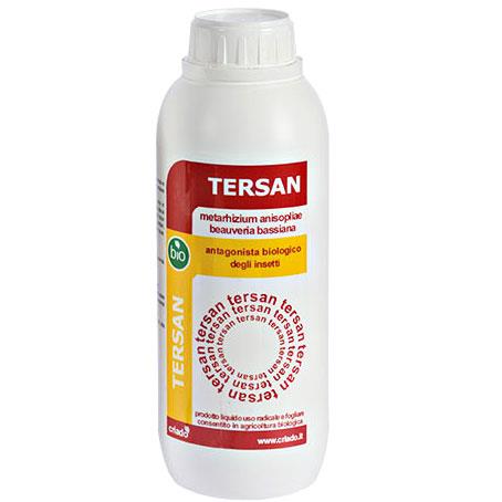 I funghi contenuti in Tersan colonizzano il terreno, le radici e l’apparato fogliare dove crescono ed emettono spore le quali, a contatto con la cuticola degli insetti, germinano in sottili ife. Le ife penetrano nel sistema circolatorio dell’insetto nel quale si sviluppano e producono le tossine che portano l’ospite a rapida morte. Dopo la morte degli insetti i funghi ne lasciano il corpo per riprodursi concorrendo ad una ulteriore diffusione del micelio nel terreno per riprendere il ciclo appena descritto. Tersan agisce su afidi, tripidi, aleurodidi (mosche bianche), acari, cocciniglie, e altri insetti nocivi.